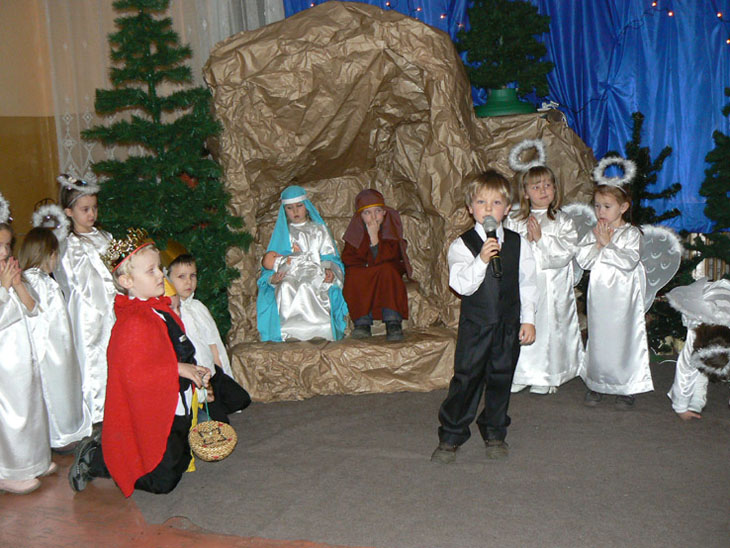 Całe spotkanie rozpoczęło się od jasełek, które wprowadziły wszystkich uczestników w atmosferę świąt. Już tradycyjnie jasełka były przegotowane przez dzieci z przedszkola w Wierzbniku. Po nich z kolędami wystąpiła młodzież skupiona wokół parafialnej scholi.